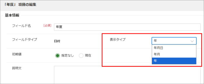 ※表示タイプが「年」の場合、yyyy/01/01(該当年の1月1日)という扱いになります。