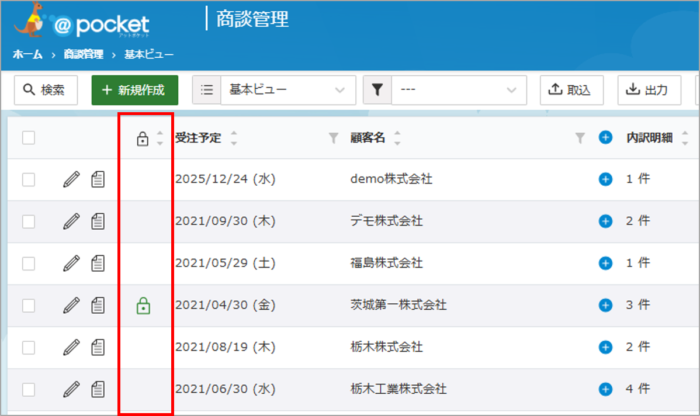 鍵アイコンがある場合、自分以外の他のユーザーが編集中という状況になります。