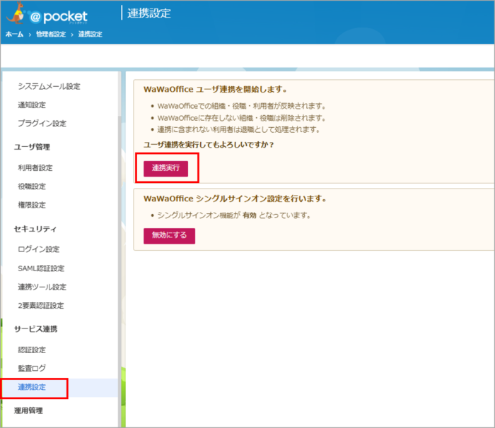 ※WaWaOfficeの「@pocket連携管理者」のユーザーが