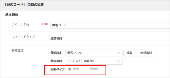 同期タイプは強制的に「同期」となり選択できない仕様となります。