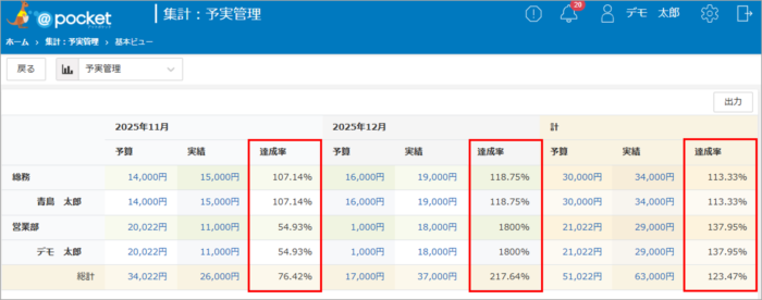 予実管理アプリの集計画面です。