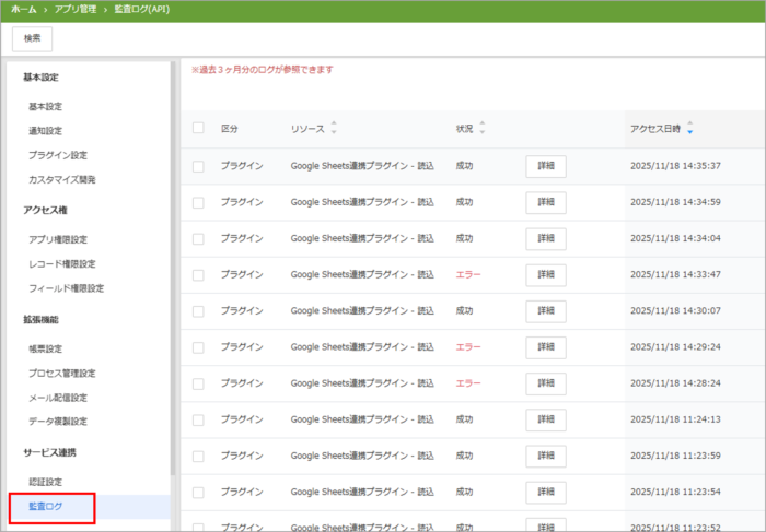 Google Sheets連携プラグインで処理が止まっている際に、監査ログにエラーとして表示されず通知が来ない現象が発生しています。