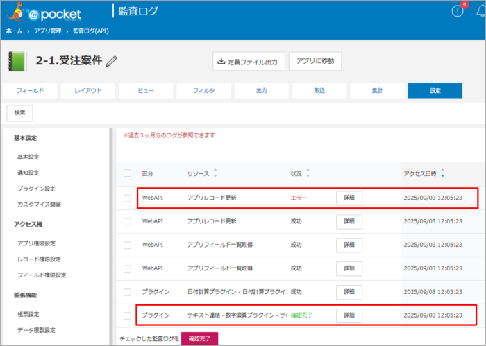 監査ログの状況ごとに色が変更になります。