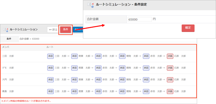 管理者設定/管理者ワークフロー設定/ルートシミュレーション