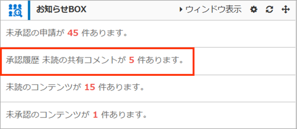 お知らせBOXから、未読の共有コメントのリンクをクリック