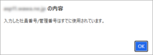 利用者登録時、”入力した社員番号/管理番号はすでに使用されています”と表示される。