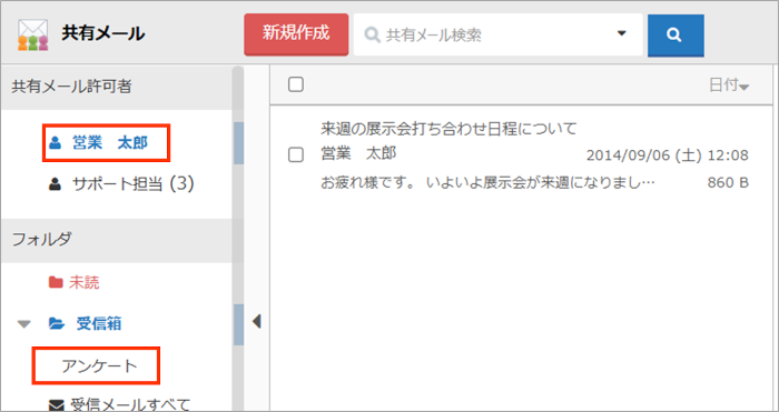 営業 太郎さんの共有メールにフォルダを作成したい場合、営業 太郎さん側でフォルダを作成します。