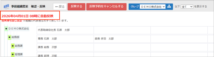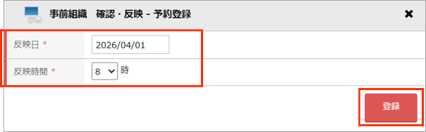 事前組織の反映予約について