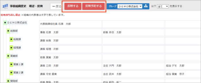 3.管理者設定/管理者事前組織設定/事前組織変更 確認・反映