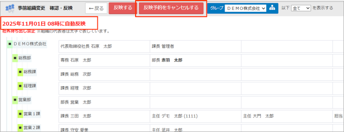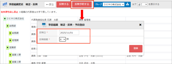 【機能強化予定】事前組織の反映予約が出来るようになります。